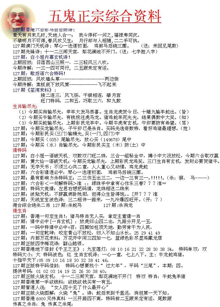127期五鬼正宗会员综合资料A[图]